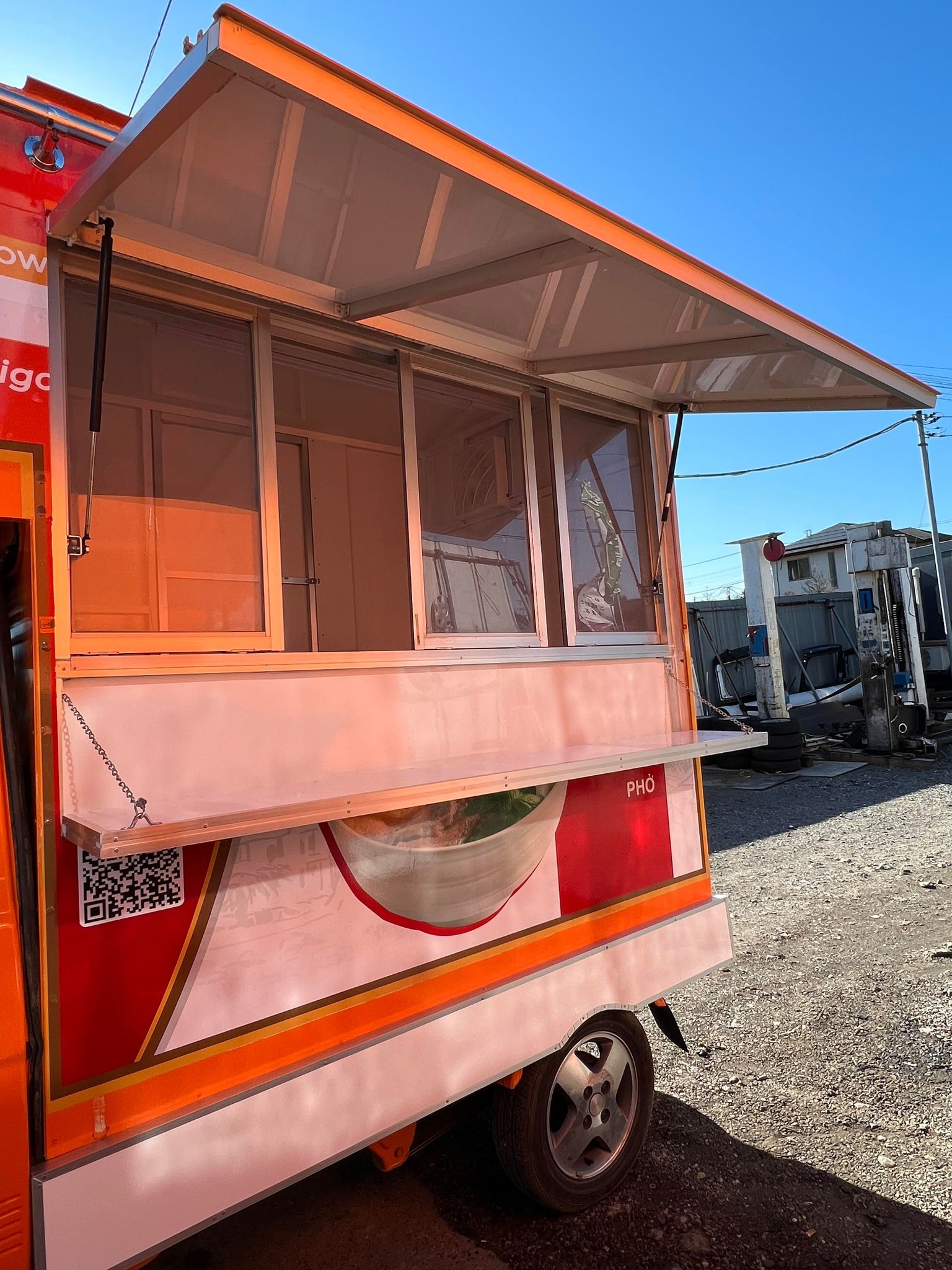 Thùng xe bán hàng + 1 Cửa bán hàng + 1 カウンター + 2 Mái che ốp bánh + 1 Khung treo Banner + 1 Bộ sàn cao cấp + 1 Kệ bếp 3 cạnh hình chữ U + 2 đèn báo hiệu trên nóc thùng + 1 Ống khói + 1 Bộ quạt thông gió + 2 Bồn rửa + 1 Thùng nước sạch + 1 Thùng nước thải + 1 Bộ điều tiết nước tự động + 1 Bộ đèn chiếu sáng + 1 Bộ đèn led cửa bán hàng + 1 Bộ công tắc điện, 2 ổ điện + 1 Bình tích điện cao cấp + 1 Bộ biến điện cao cấp ( Điện bình sang điện gia dụng ) + 1 Hệ thống dây dẫn điện , sạc điện , cung cấp điện Xe được làm bằng chất liệu nhôm cao cấp + Vách nhôm cách nhiệt + Phủ sơn chống rỉ sét , ẩm thấp nước |