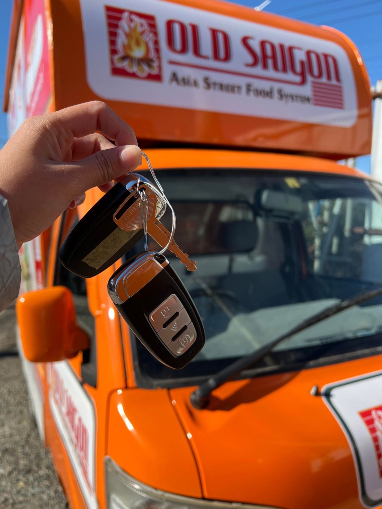 Thùng xe bán hàng - 2 Cửa Phủ màu VÀNG , sơn bóng và keo theo yêu cầu + 2 Mái che ốp bánh + 1 Khung treo Banner + 1 Bộ sàn gỗ loại tốt + 1 Kệ bàn 3 cạnh + 1 Gác treo để đồ + 1 Ống khói + 1 Bộ quạt thông gió + 2 Bồn rửa + 2 Vòi nước tự động + 1 Thùng nước sạch + 1 Thùng nước thải + 1 Bộ đèn chiếu sáng + 1 Bộ đèn led quầy bán hàng + 1 Bộ công tắc điện, 2 ổ điện + 1 Rờ-le chống quá tải + 1 Bình tích điện cao cấp + 1 Bộ biến điện cao cấp ( Điện bình sang điện gia dụng ) + 1 Bộ nguồn sạc bình ( Xe sang điện gia dụng ) + 1 Máy phát điện , cung cấp điện dự phòng + 1 Bô dẫn điện dự phòng 20 mét |